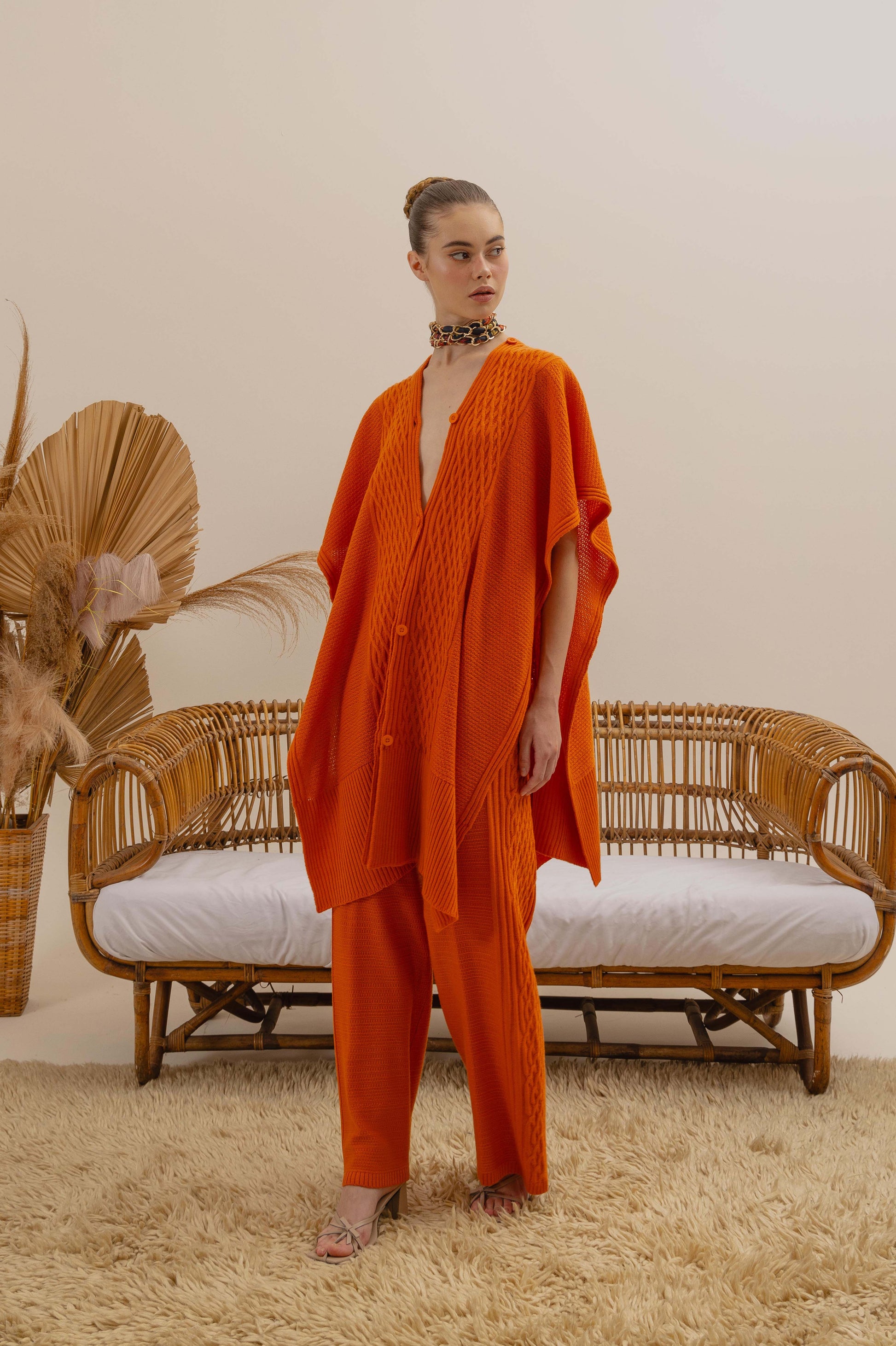 VT 8239-2 Multiways Knitt Poncho in Orange