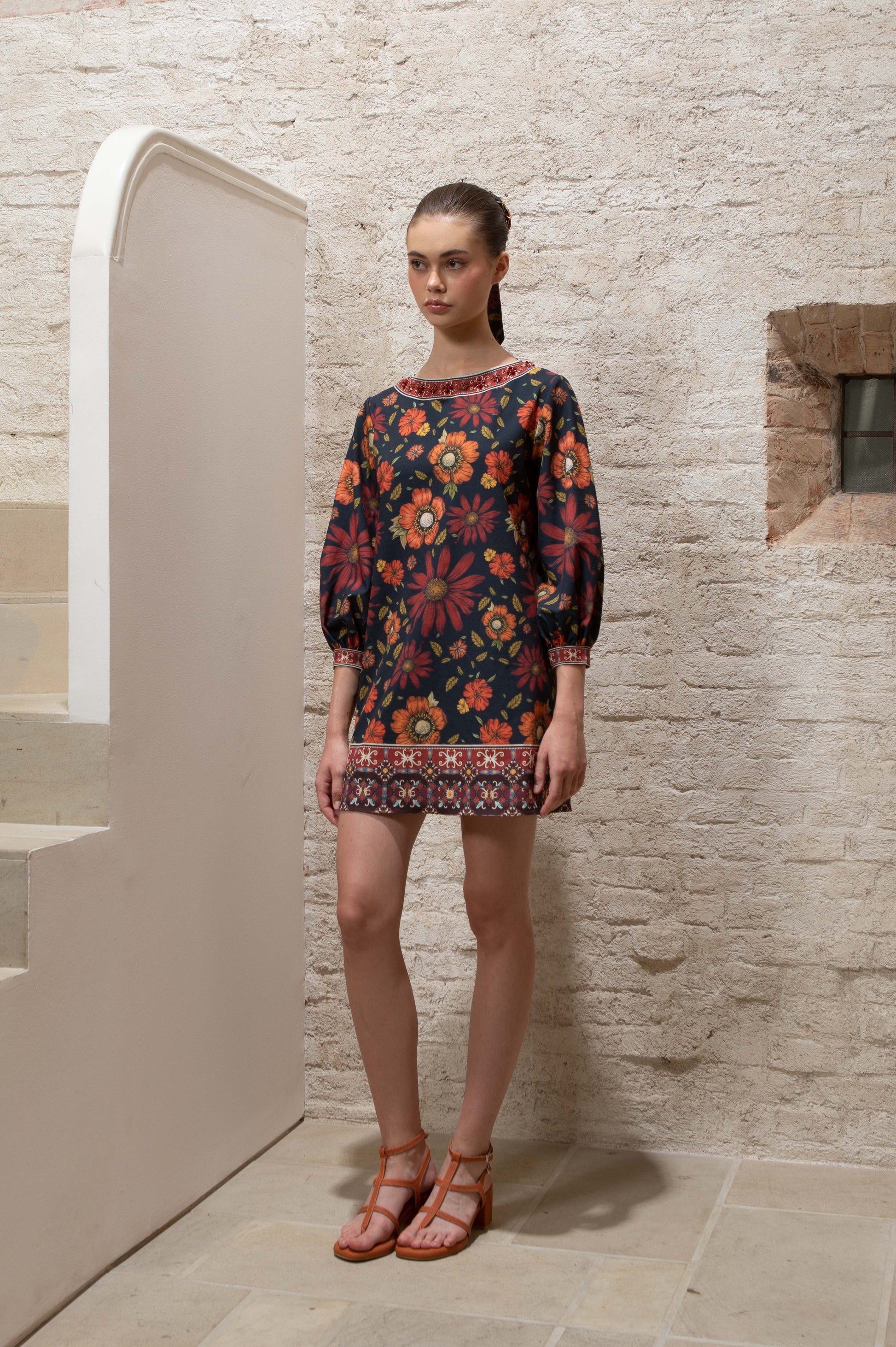 VT 8631 Rona Wide Neck Mini Dress with Puffed Sleeve in Navy