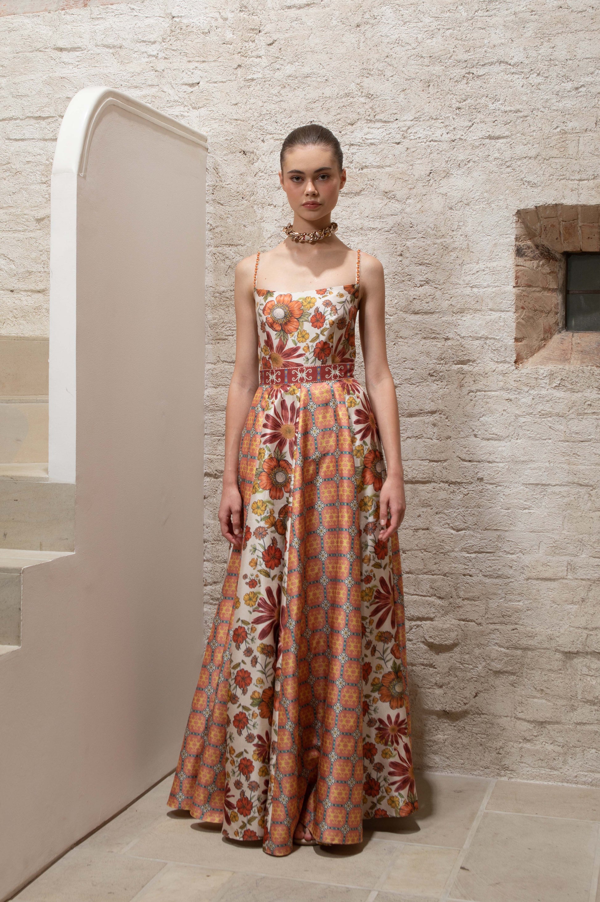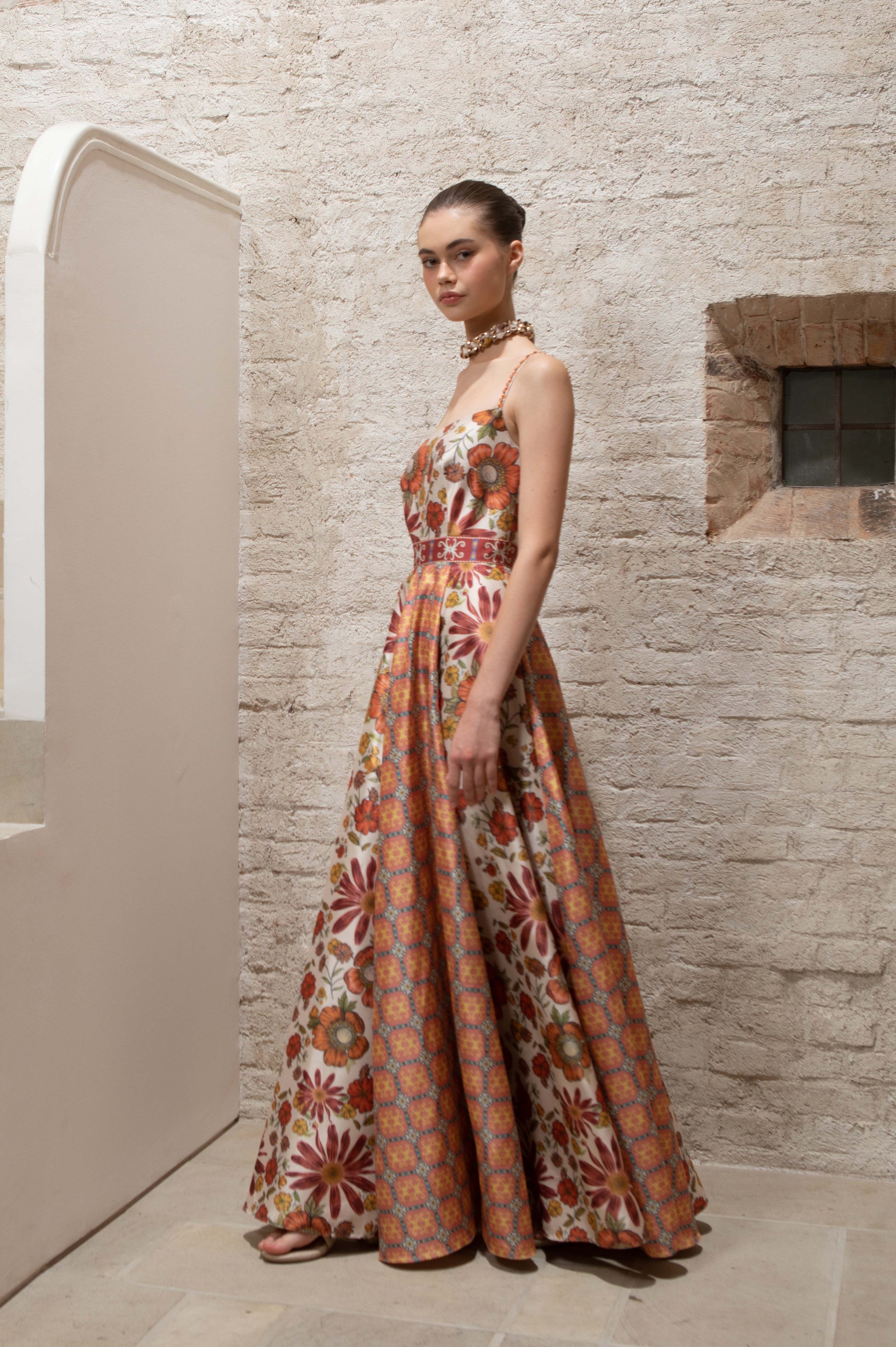 VT 8632-1 Rona Gored Ankle-dress in Ecru