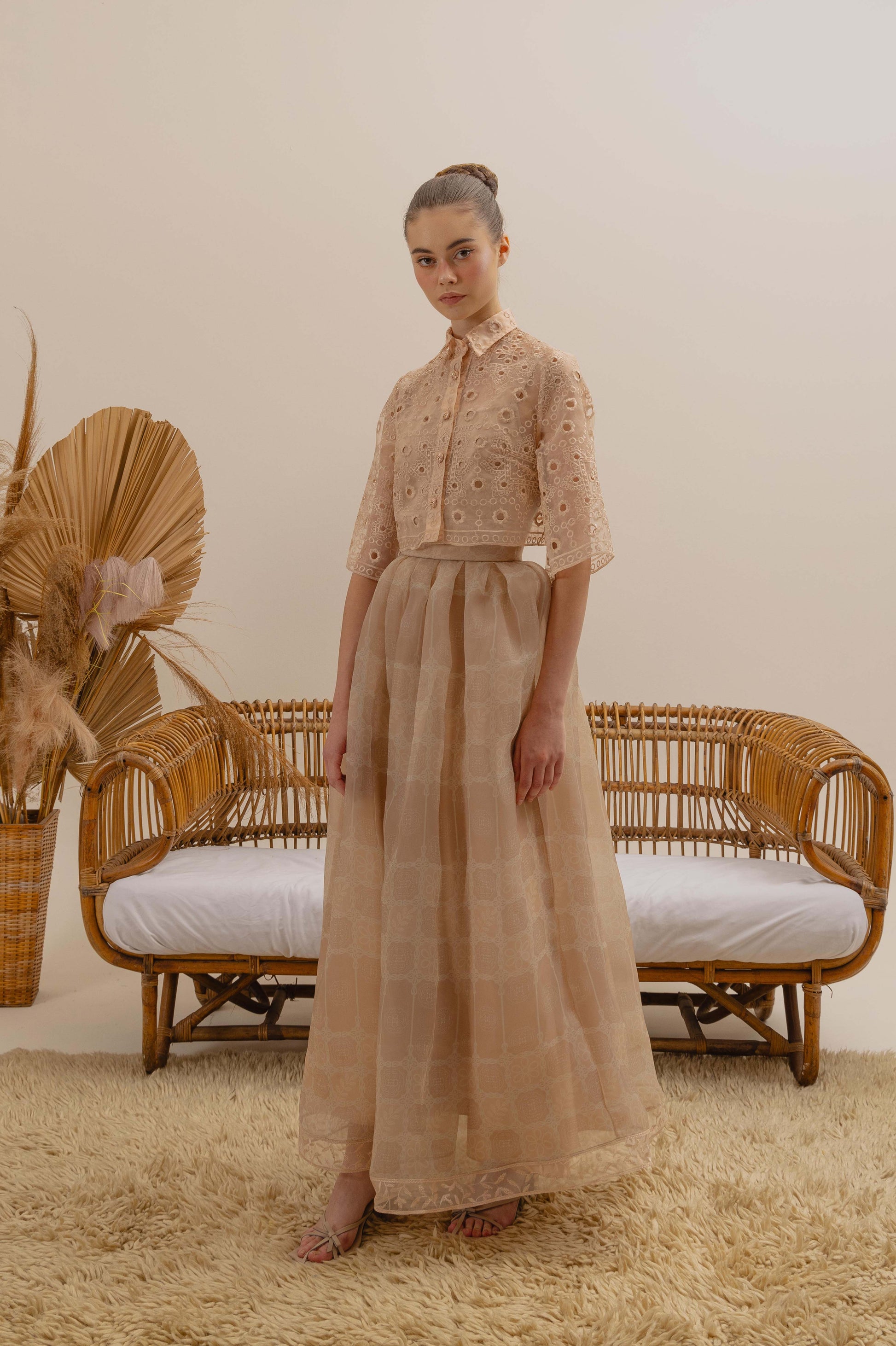 VT 8664 / VT 8662-1 Organza Shirt in Ecru