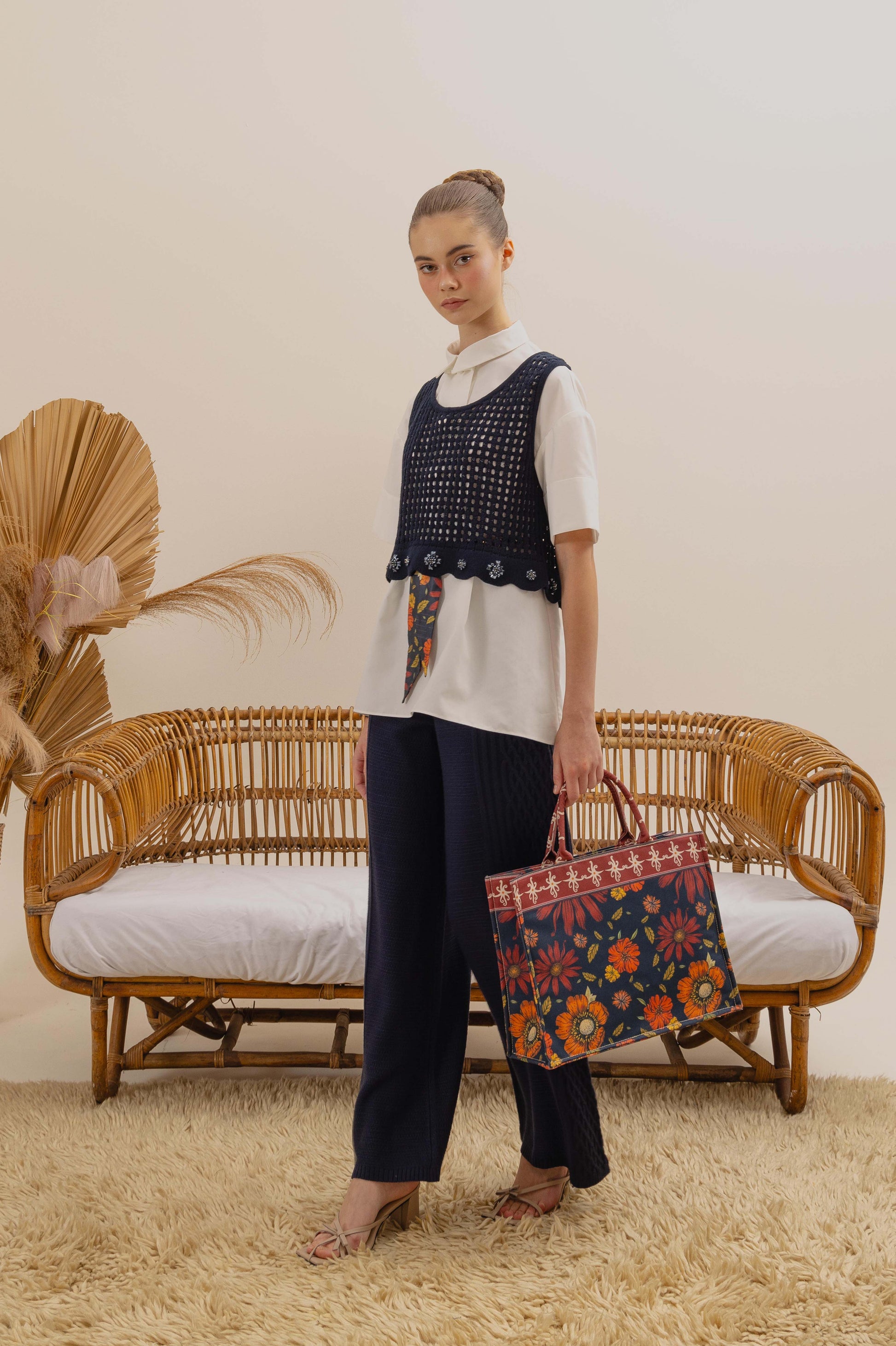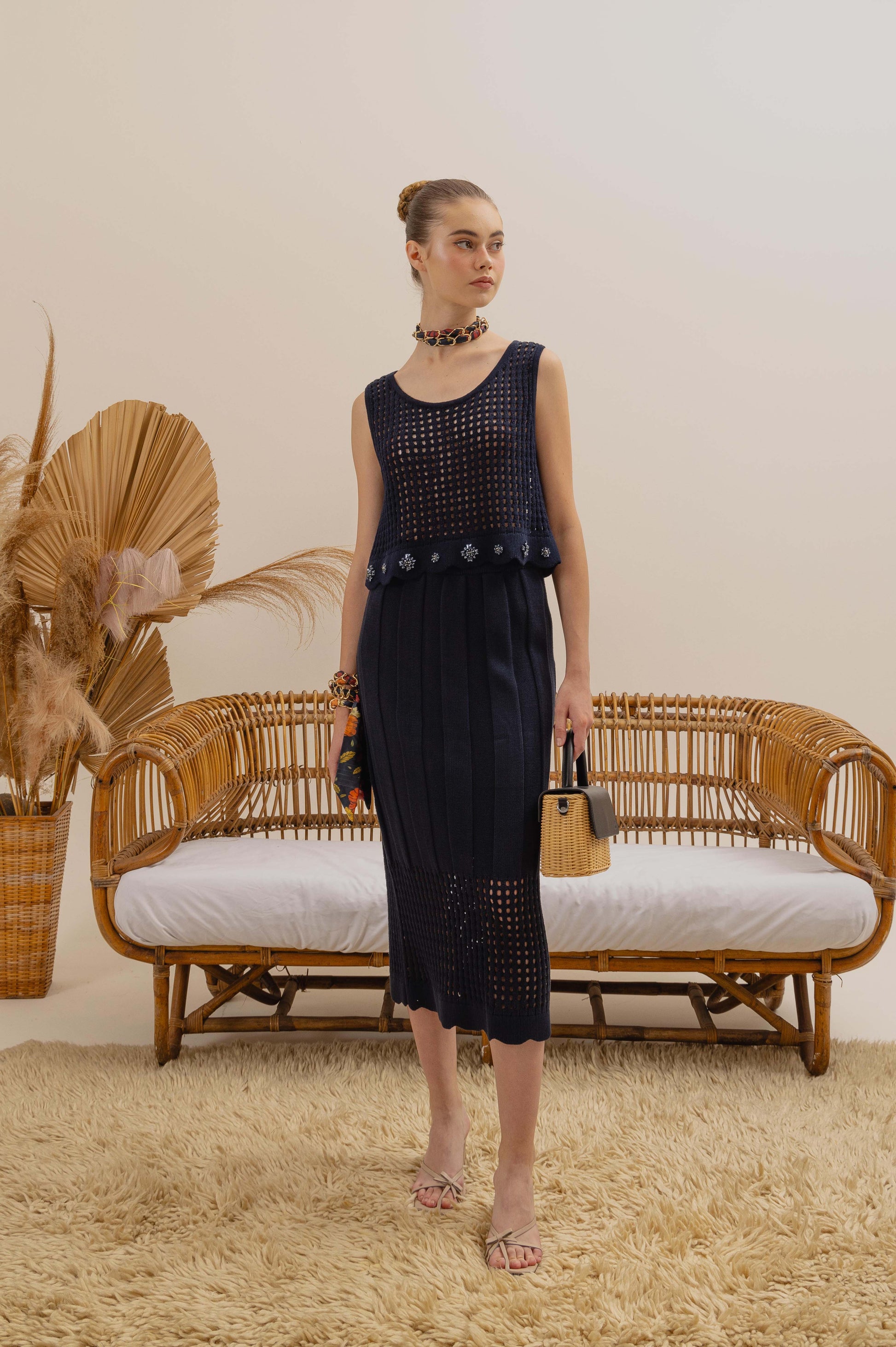 VT 8678 / VT 8679 Knitted Crop-top in Navy Set
