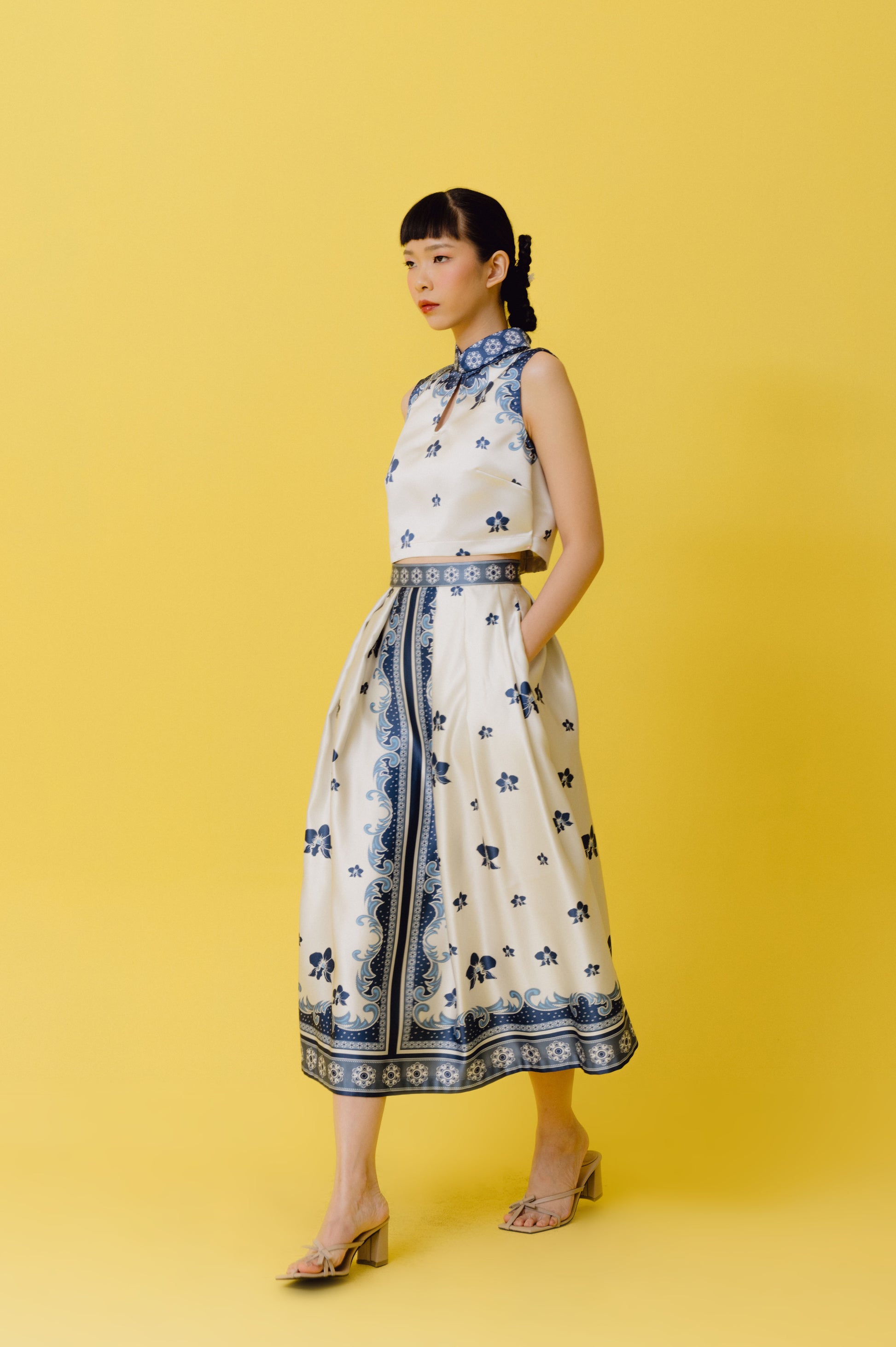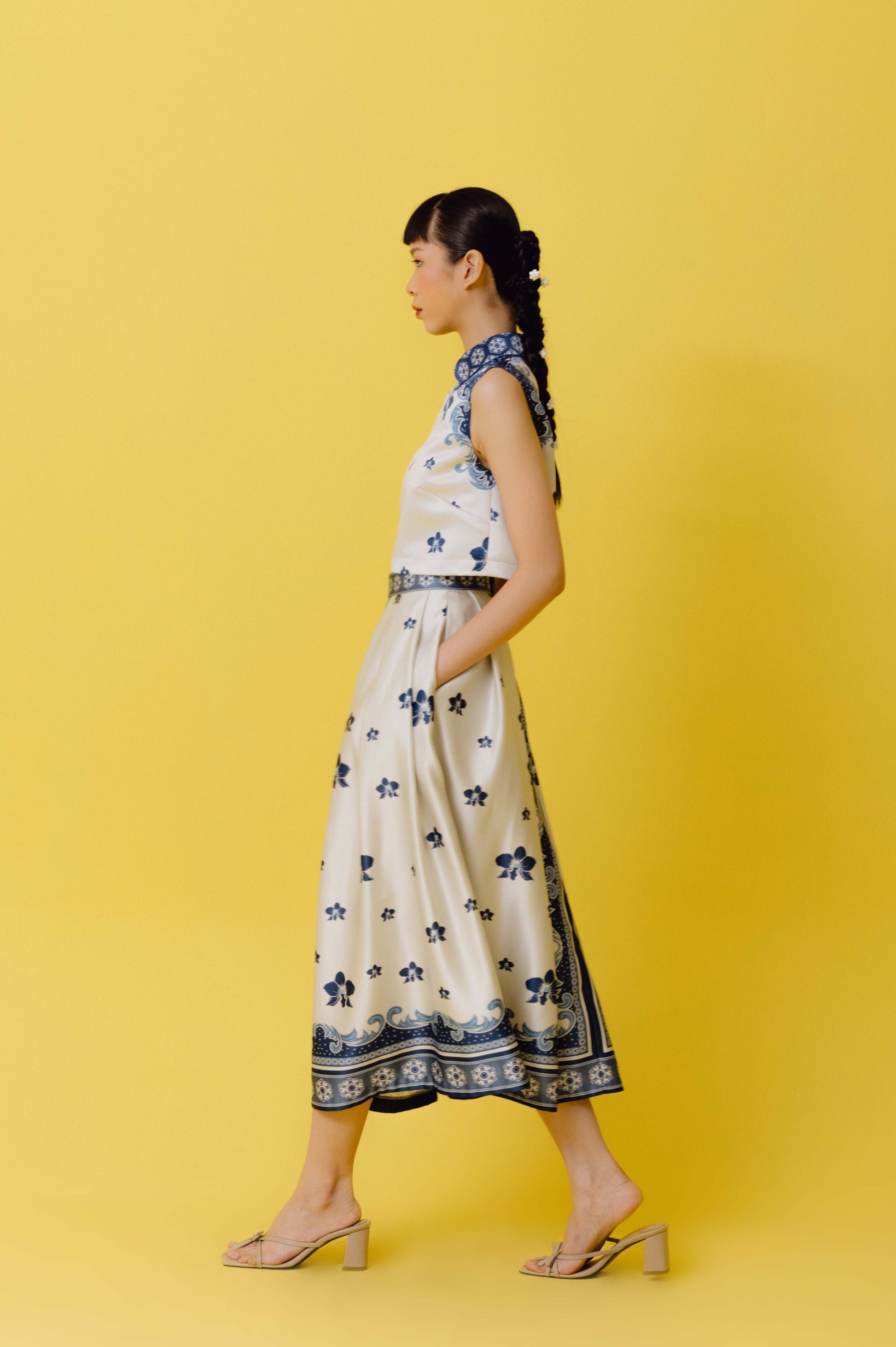 VT 8691-2 / VT 8692-2 Lihua Crop Top in Pearl Set