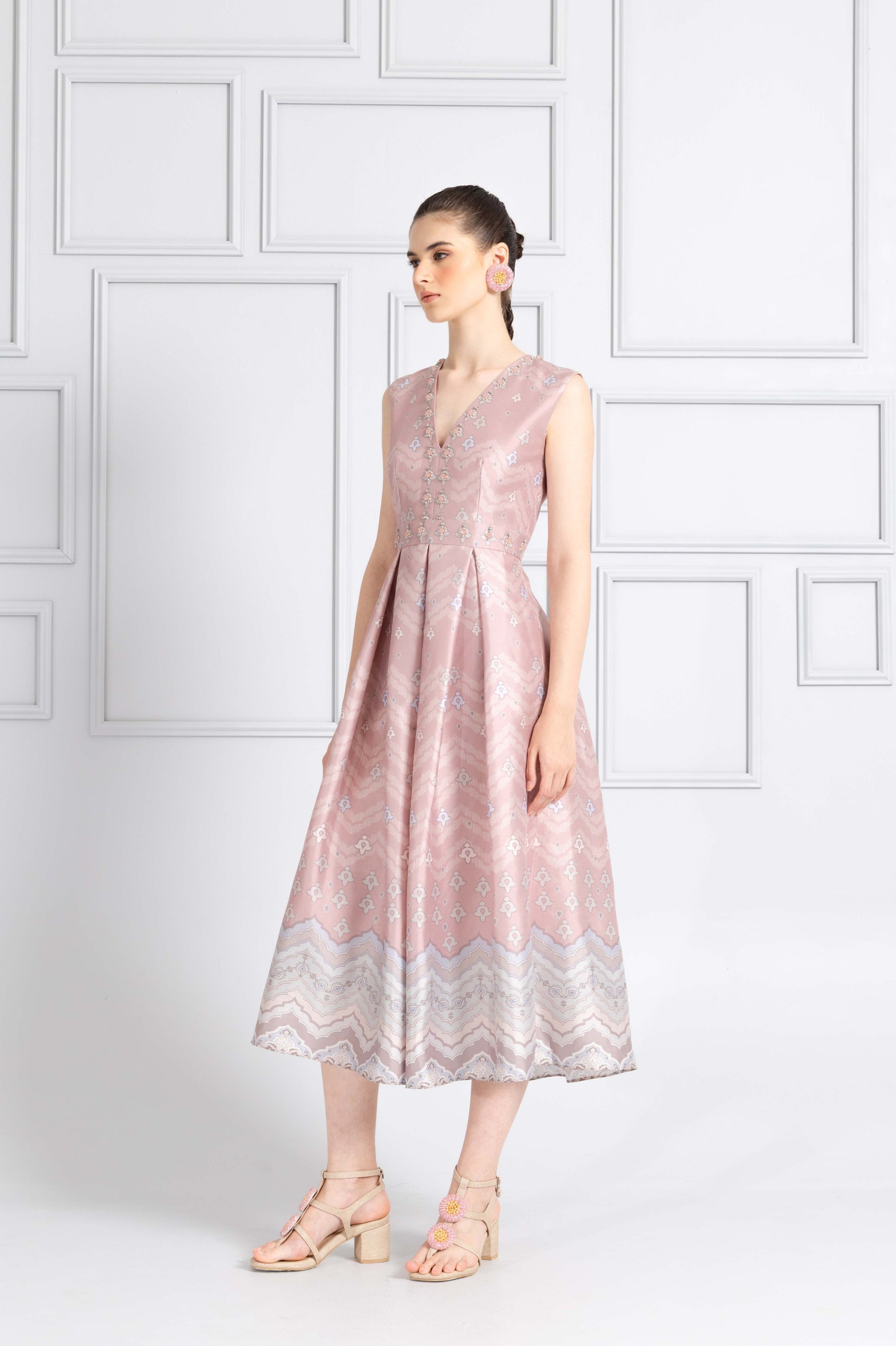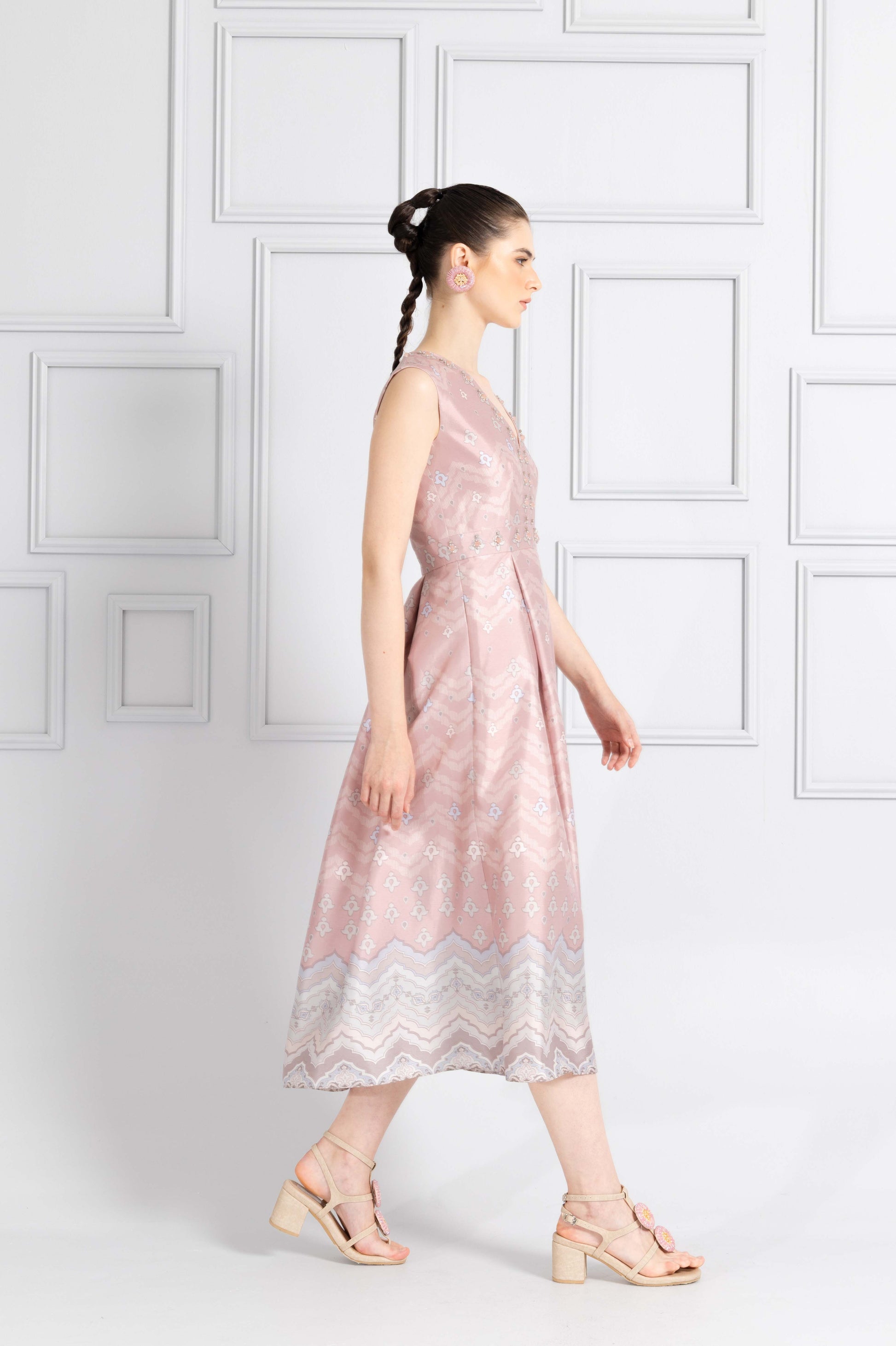 VT 8744 Danum Shantung Pleated Midi-dress in Blush