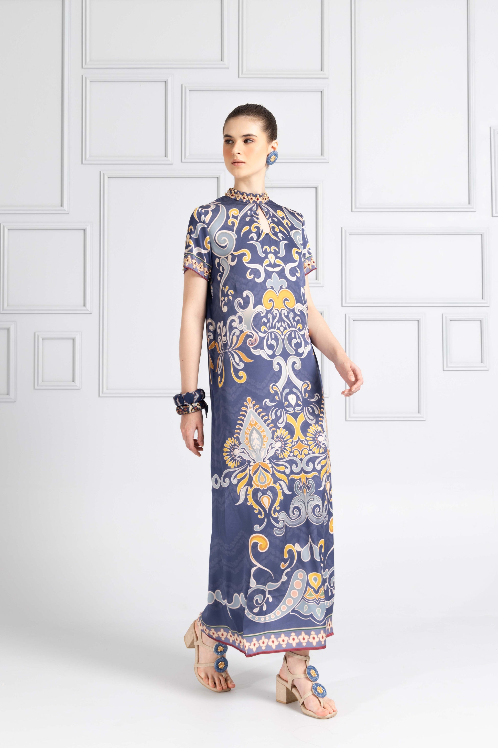 VT 8750 Huma Satin Short Sleeve Ankle-dress