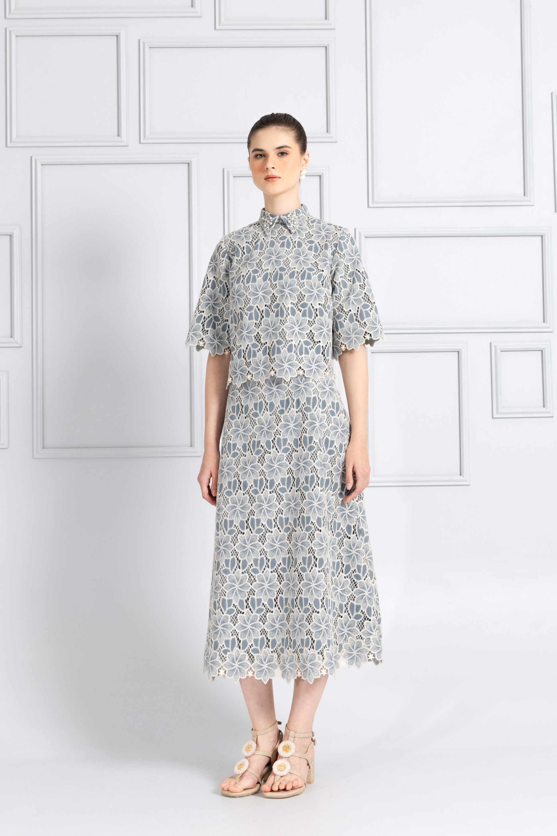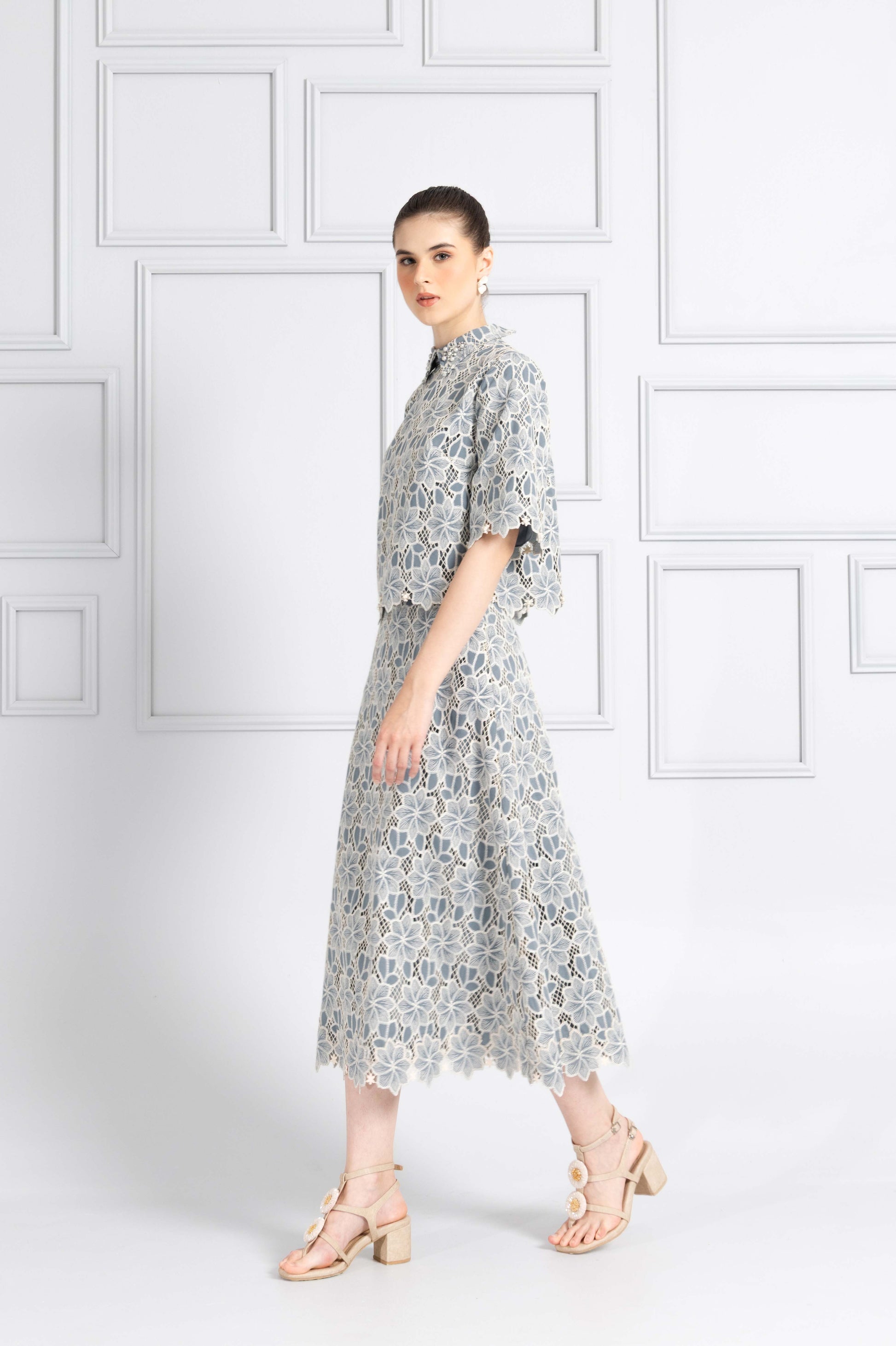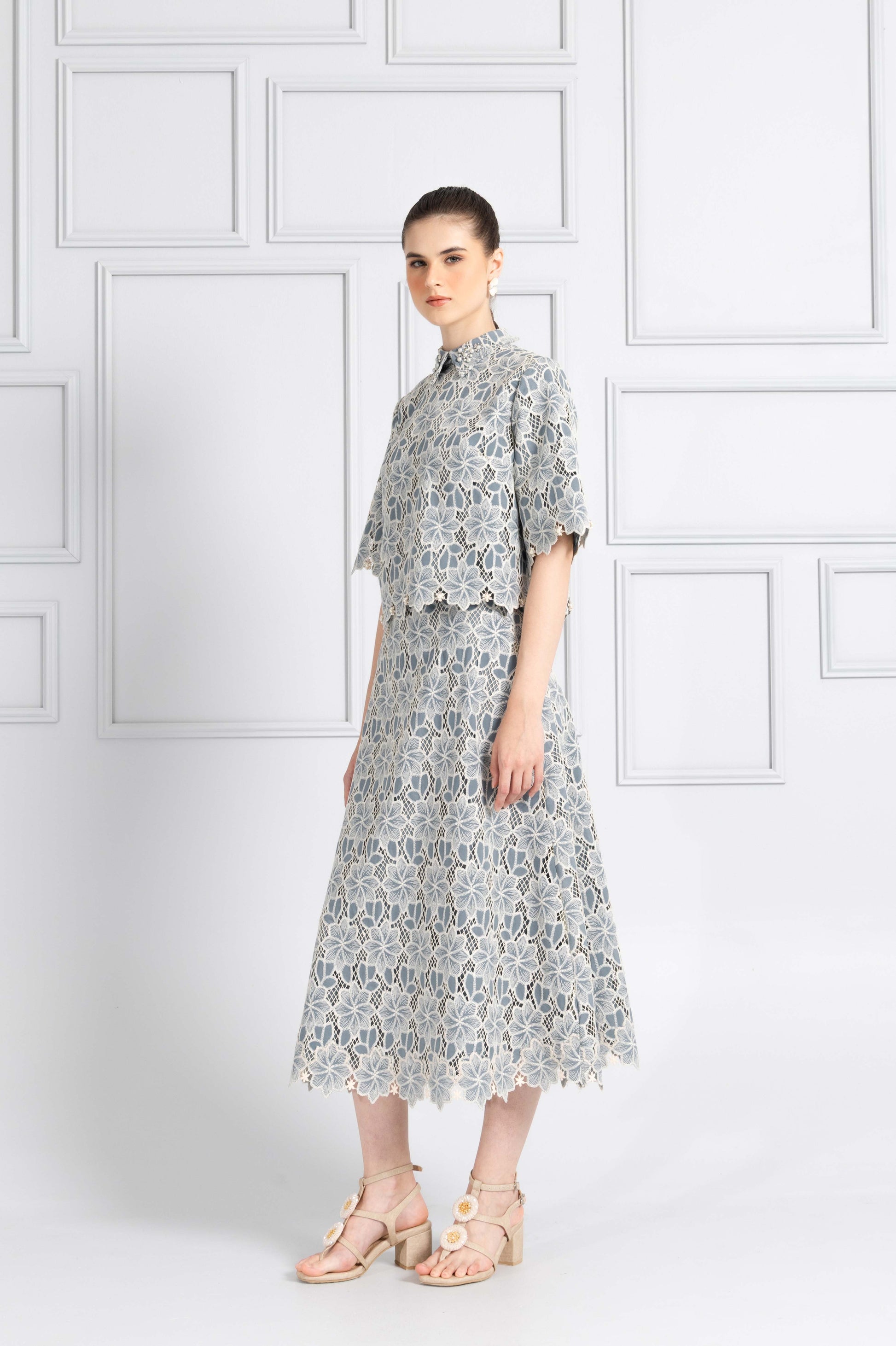 VT 8761 / VT 8762 Floral Embroidered Shirt in Blue