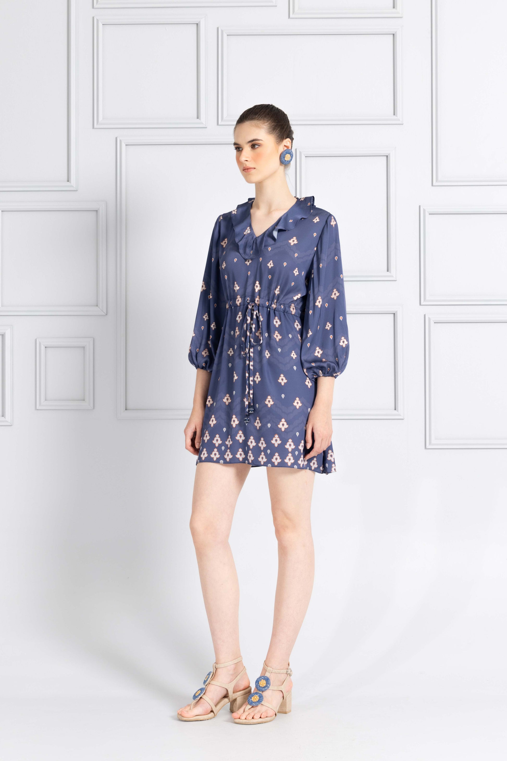 VT 8768-1 Danum Satin Mini-dress with Ruffles in Blue
