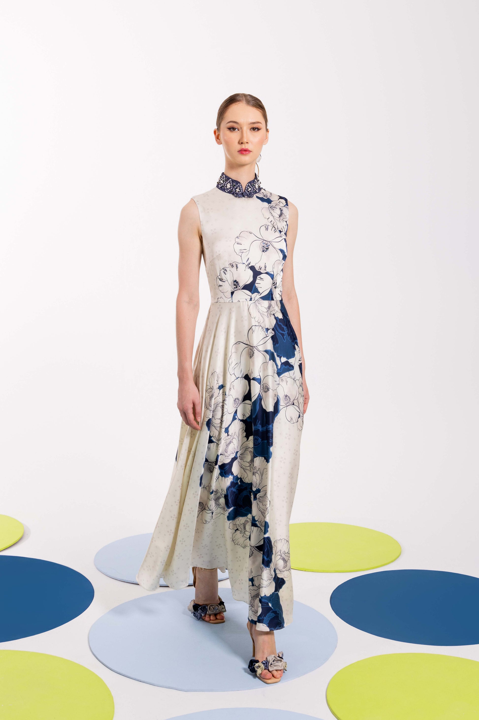 VT 8779 WUNGA Flared Satin Ankle-dress in Beige